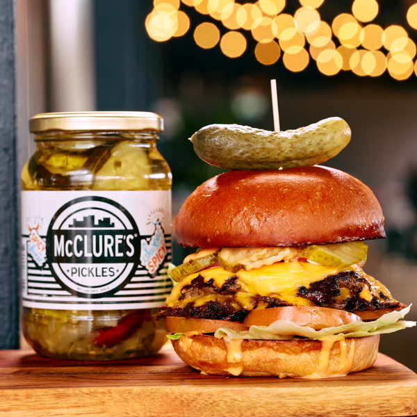 Smash Burgers with McClure's Sweet & Spicy Pickles