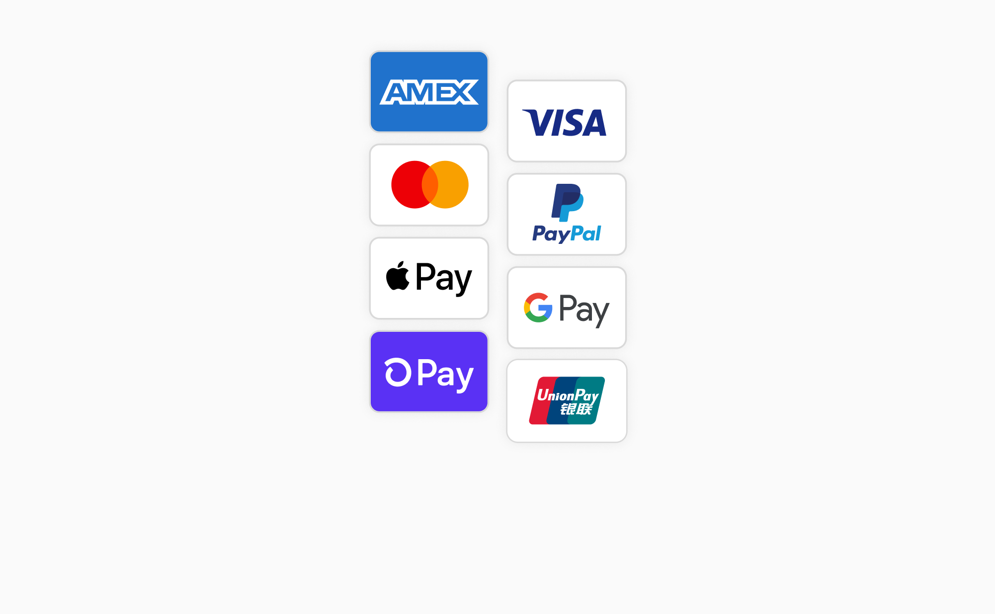 We accept credit card payments via Shopify Payments secure payment gateway from the following issuers: